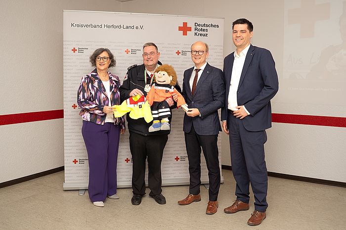 Anlässlich des 25-jährigen Jubiläums des DRK Duos Kampi und Puppe Paul, fand am Montag, den 02.03.2026 die Auftaktveranstaltung im DRK-Kreisverband Herford-Land e.V. statt.